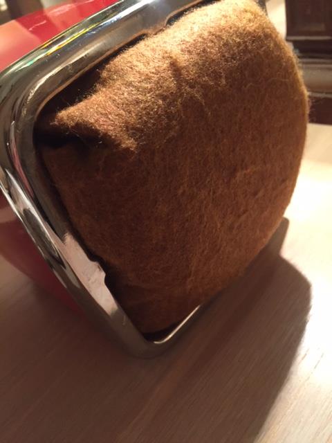 reindeer brown chosen by me for the holidays or a car - a plastic bag of rice sealed, a piece of thick cardboard, a big piece of felt around cardboard what will beurge and melt forward, one cable tie, a box of tissues, two screws in metal rim on bottom after smooshing all in...steel wooled dumb acrylic flower off not here it sez 'i loved it'...hi jayne
