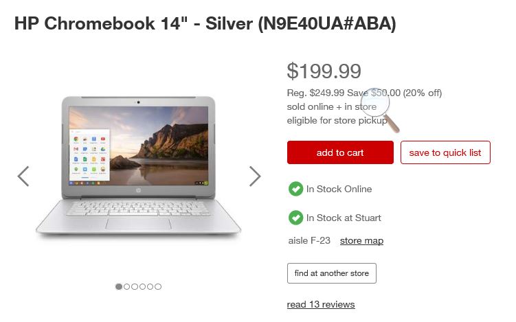 fingerling at target this week: hp chromebook 14" silver $199.99 - see it, other $50 printer yet