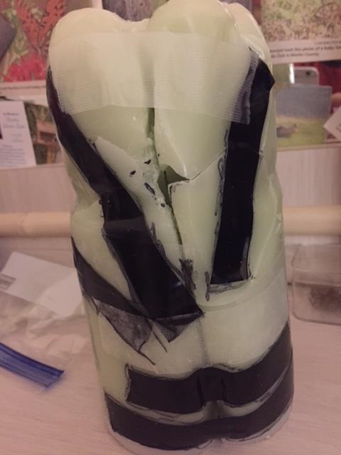 almost ready for plaster of paris the hand mold i made of wax in a tight plastic bag for no spill